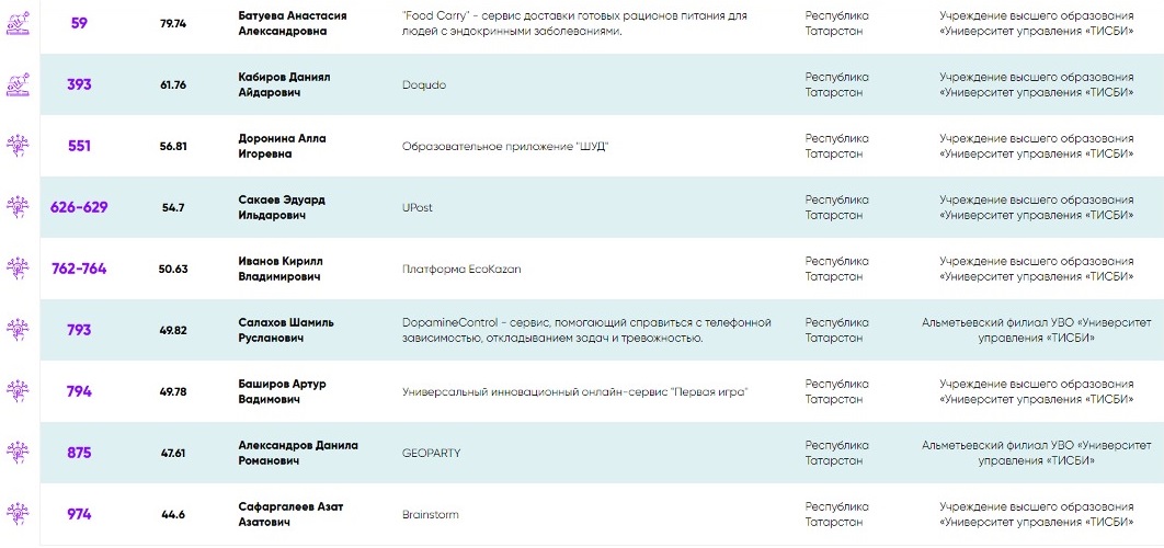 В рейтинг вошли проекты студентов Университета управления «ТИСБИ»:
